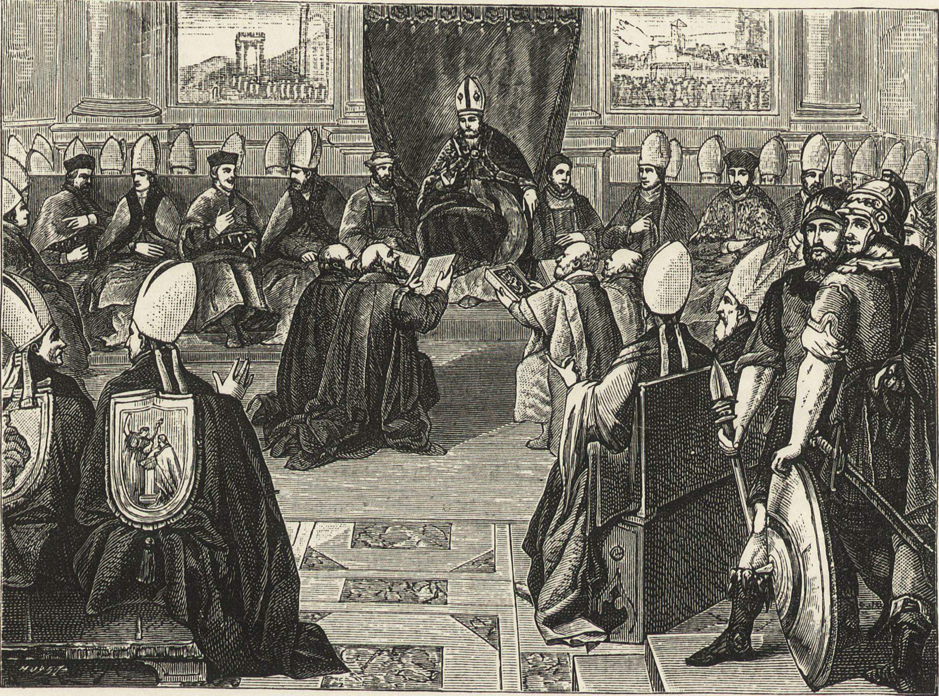 f) Lyon II: conduzido pelo Papa Gregório X, este concílio trabalhou com material trazido pelos bispos de suas dioceses de origem. Novas regras da eleição papal foram definidas. A unificação da Igreja Ocidental e Oriental esteve na pauta, com a retomada da questão do “filioque” (doutrina que afirma que o Espírito Santo procede do Pai e do Filho e que é rejeitada pelo Oriente Cristão). A primazia de Roma sobre os patriarcados Orientais também foi pauta, mas sem solução clara. Outra conquista de Lyon II foi a definição do Conclave para a eleição do Papa.